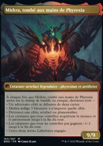 Combo proposée le 16/11/2022, commentaire de elficpower : Posté pour inspirer ceux qui veulent jouer Mishra, tombé aux mains de Phyrexia en standard : Diabolique dessein tutorise une des cartes clé. Le dragon est sacrifiable si besoin, vu qu'il peut être rejoué avec exhumation. |